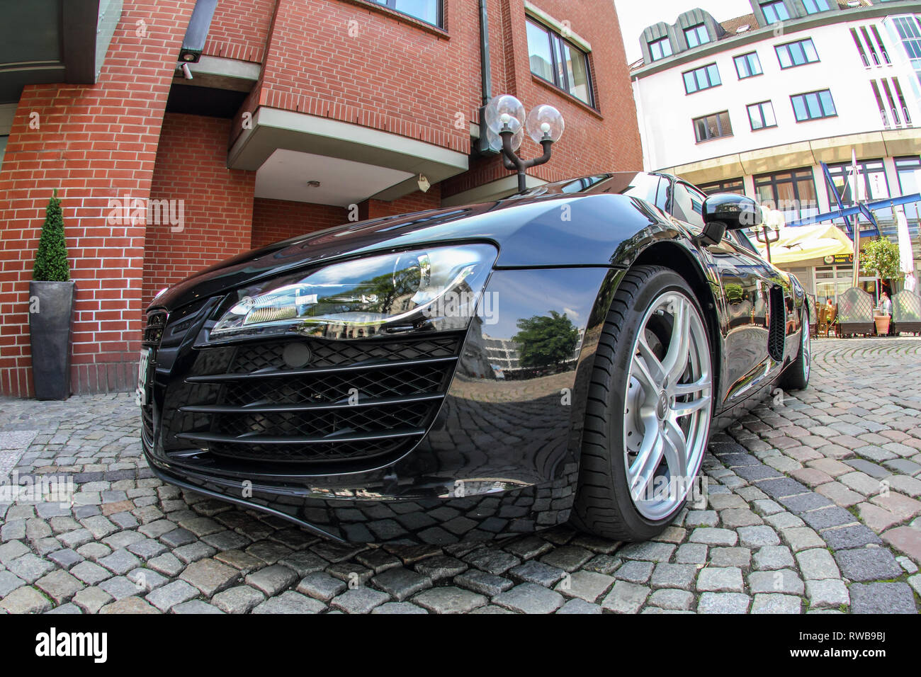 Audi Quattro Beautiful Black Street Car Fisheye Lens Shot In Front | Get Image Full HD