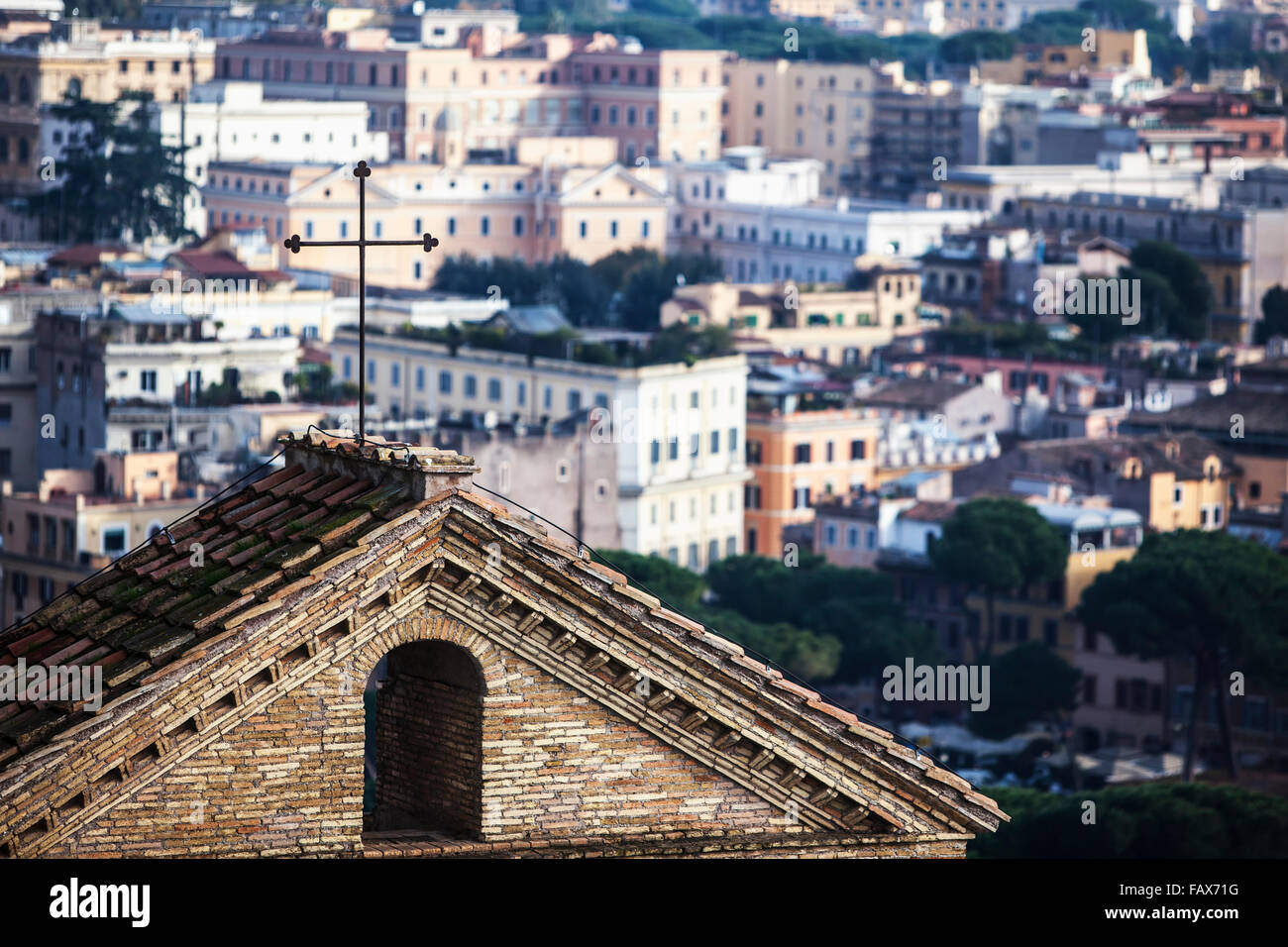 Cross On Peaked Roof Of A Building And Cityscape Rome Italy Stock Photo Alamy | Get Image Full HD