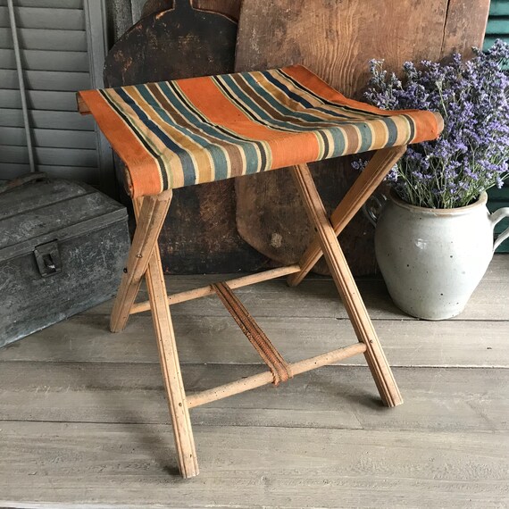 Vintage french wooden and stripes canvas folding camp chair stool maisonw. Outdoor camp stool folding seat canvas wood heavy duty festival gear junqueinthetrunque 5 out of 5 stars 667 5500.