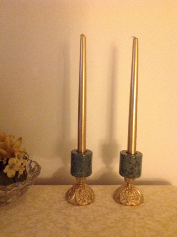 Pair Of Vintage Green Marble And Brass Candlestick Holders Etsy | Get Image Full HD