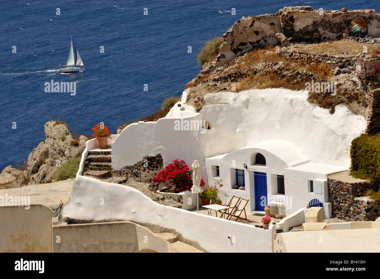 House Built Into The Cliff Face Overlooking The Caldera On The | Get Image Full HD