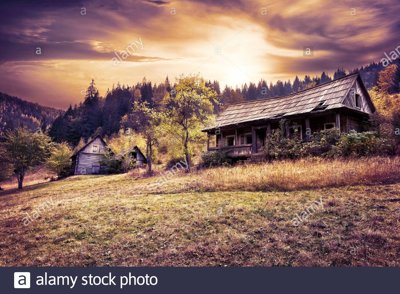 Abandoned Wooden House On Hillside Under Dramatic Sky Toned In | Get Image Full HD