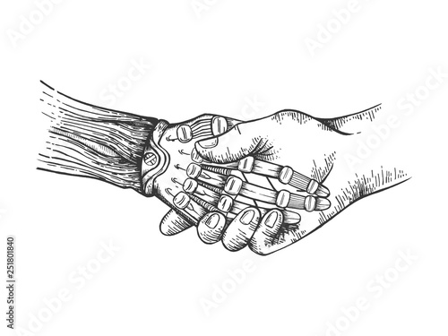 Mechanical Human Robot Handshake Sketch Engraving Vector | Get Image Full HD