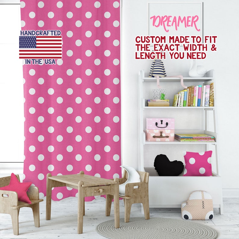 The polka dot chair is a participant in the amazon services llc associates program an affiliate advertising. Polka dot pink white modern nursery decor 50 wide curtain panel by roostery. Created for the queen or full size beds the comforter measures 88l x 84w.