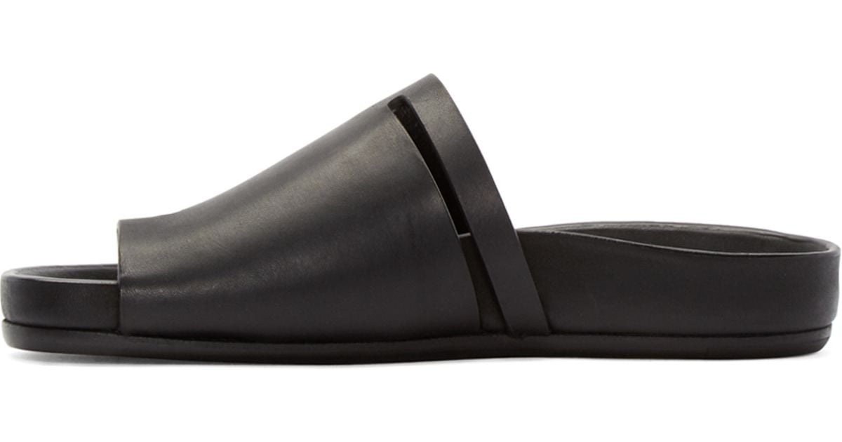 Buffed leather slip on sandals in black. If you want a pair of sandals you can walk around in for hours whilst looking unquestionably cool this pair by rick owens is just the ticket. Martens birkenstock prada crocs valentino versace bally moschino armani giuseppe zanotti calvin klein rider fendi under armour marni gioseppo grenson loewe dsquared2 balenciaga yeezy santoni.