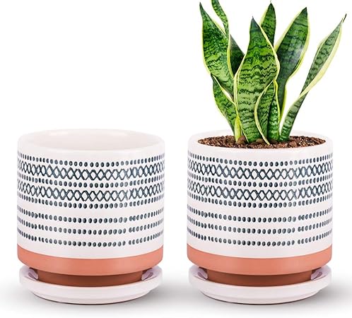 T4u 25 inch small ceramic succulent pots with drainage set of 6 mini pots for plants tiny porcelain planter air plant flower pots cactus faux plants containers modern decor for home and office 46 out of 5 stars 811. 5 inch round planter with.
