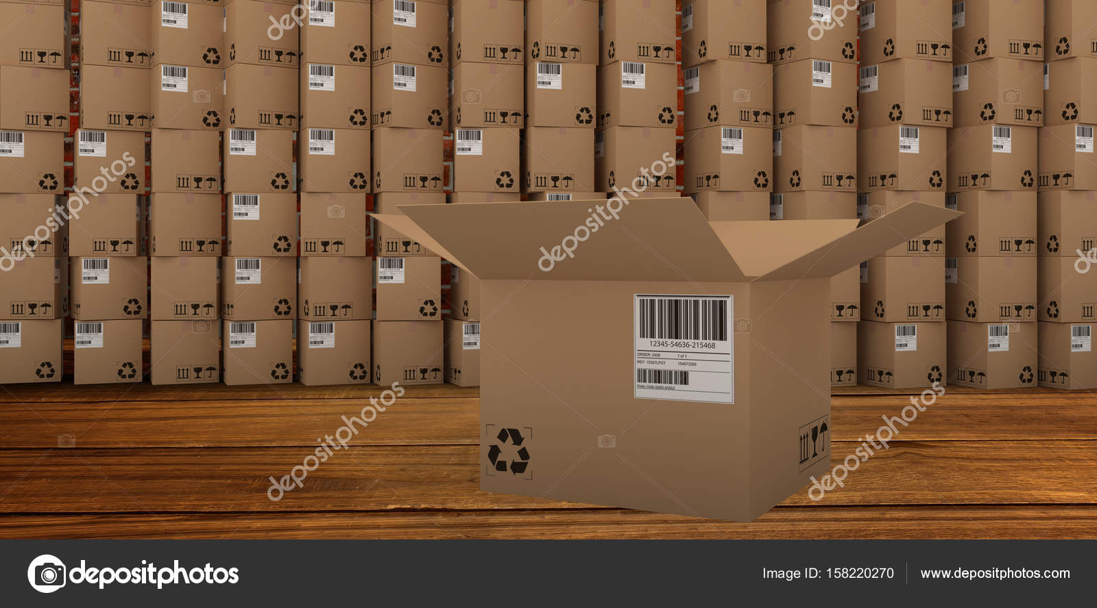 Composite Image Of Open Cardboard Box By Stack Of Boxes Stock | Get Image Full HD