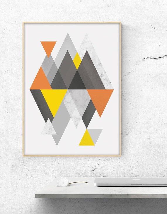 Grey Yellow And Orange Geometric Mirror Poster Print Etsy | Get Image Full HD